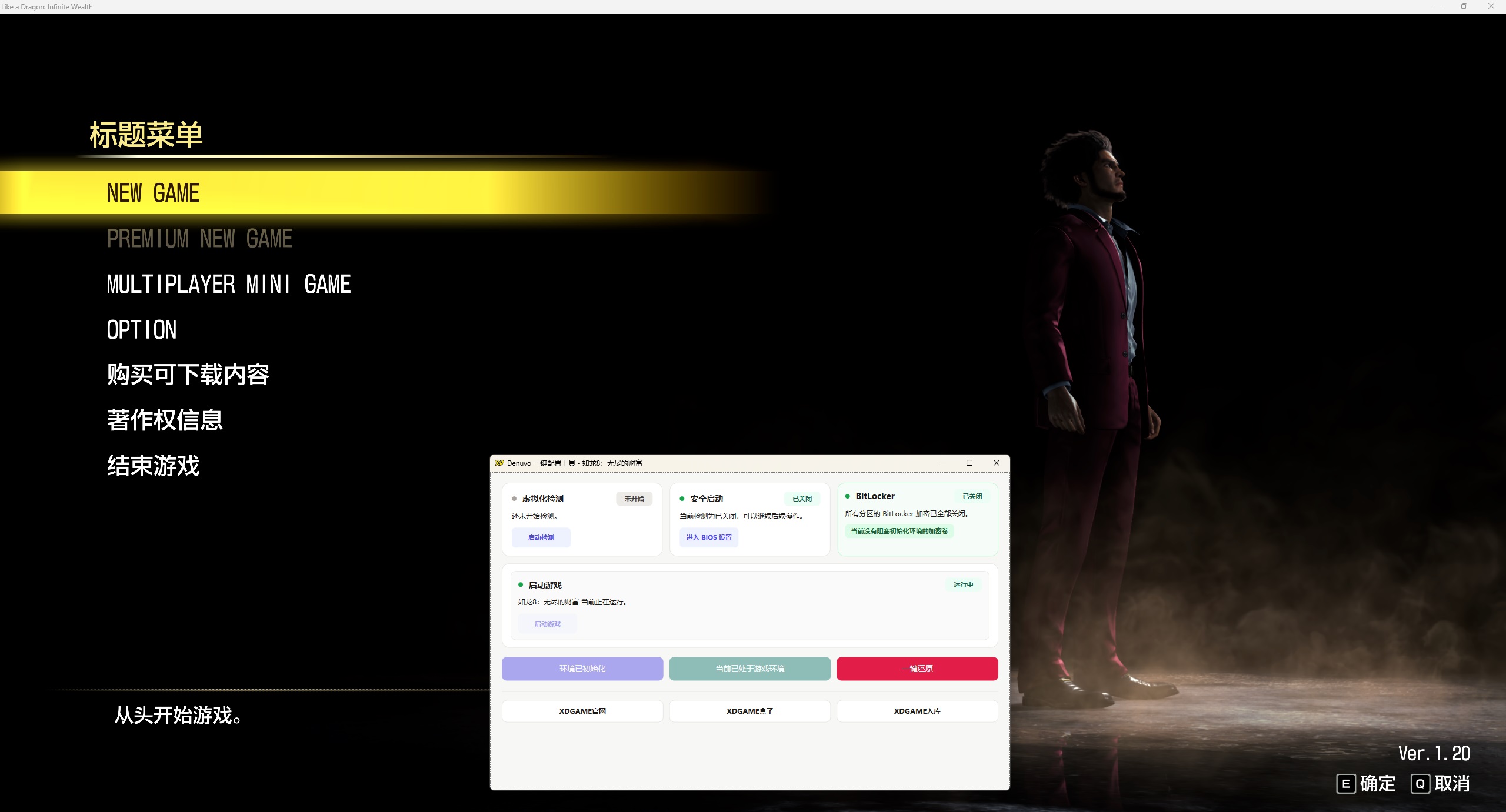 重启电脑后继续打开Denuvo.exe点击 启动游戏 → 开始玩耍 ↓ 站长亲测截图 ↓